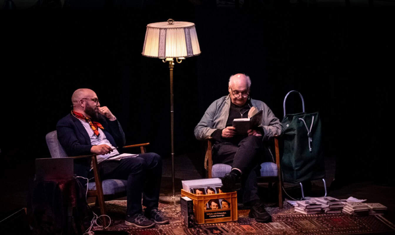 Journalisten Peter Gropman leder samtalet från fåtöljerna på scenen. Samtalet kretsar kring Cornelis liv och musik, och hur Göran Greider hittade Cornelis inre röst och fick ned den i skrift.