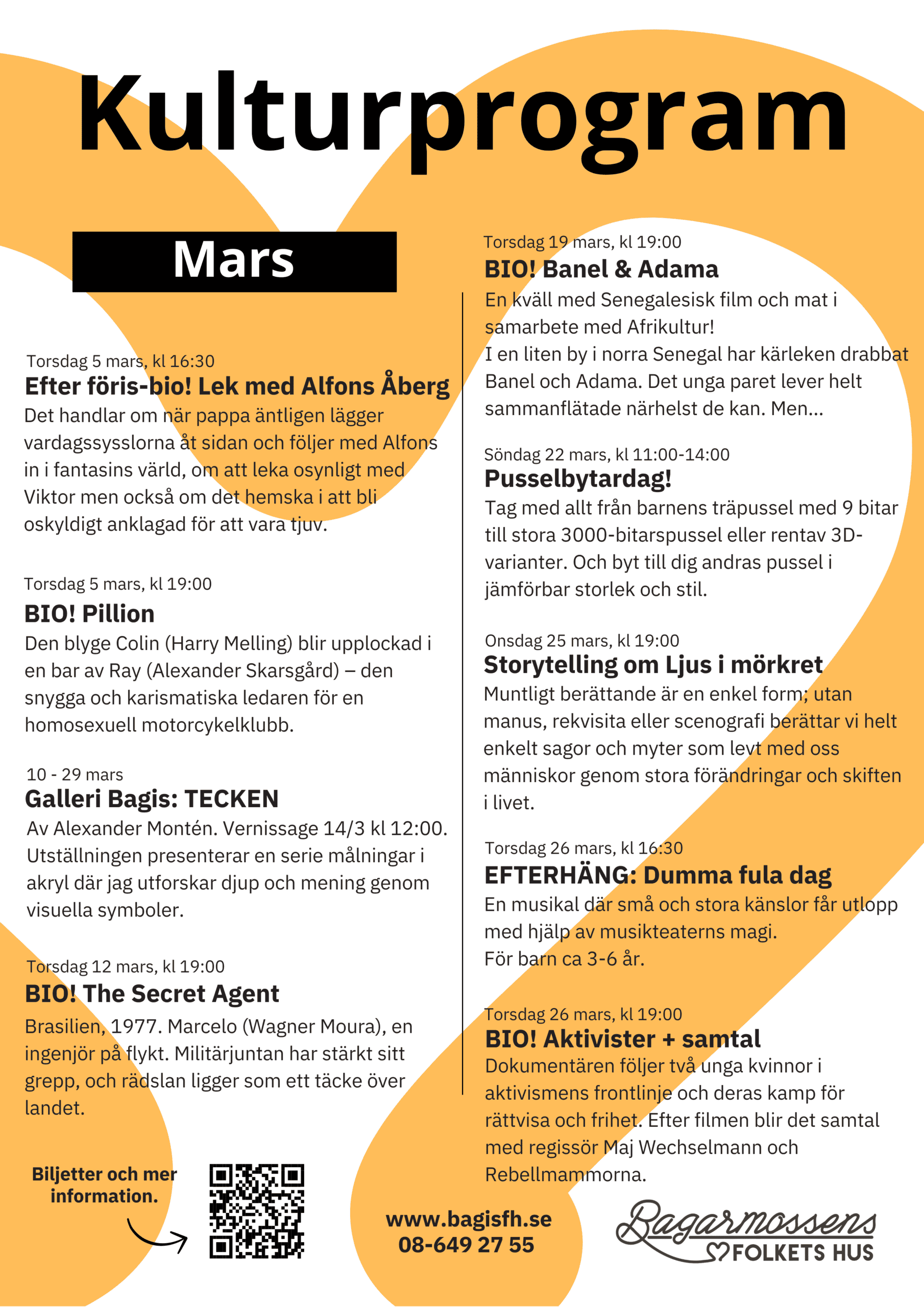 Här kan du hämta månadsprogrammet för vår kulturverksamhet i huset. Ladda gärna ned, skriv ut och sätt på kylskåpsdörren eller arbetsplatsen.